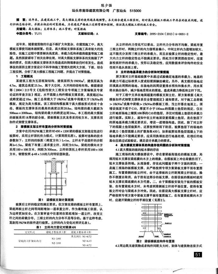 高大模板施工問題分析及對策措施(陳少強(qiáng))