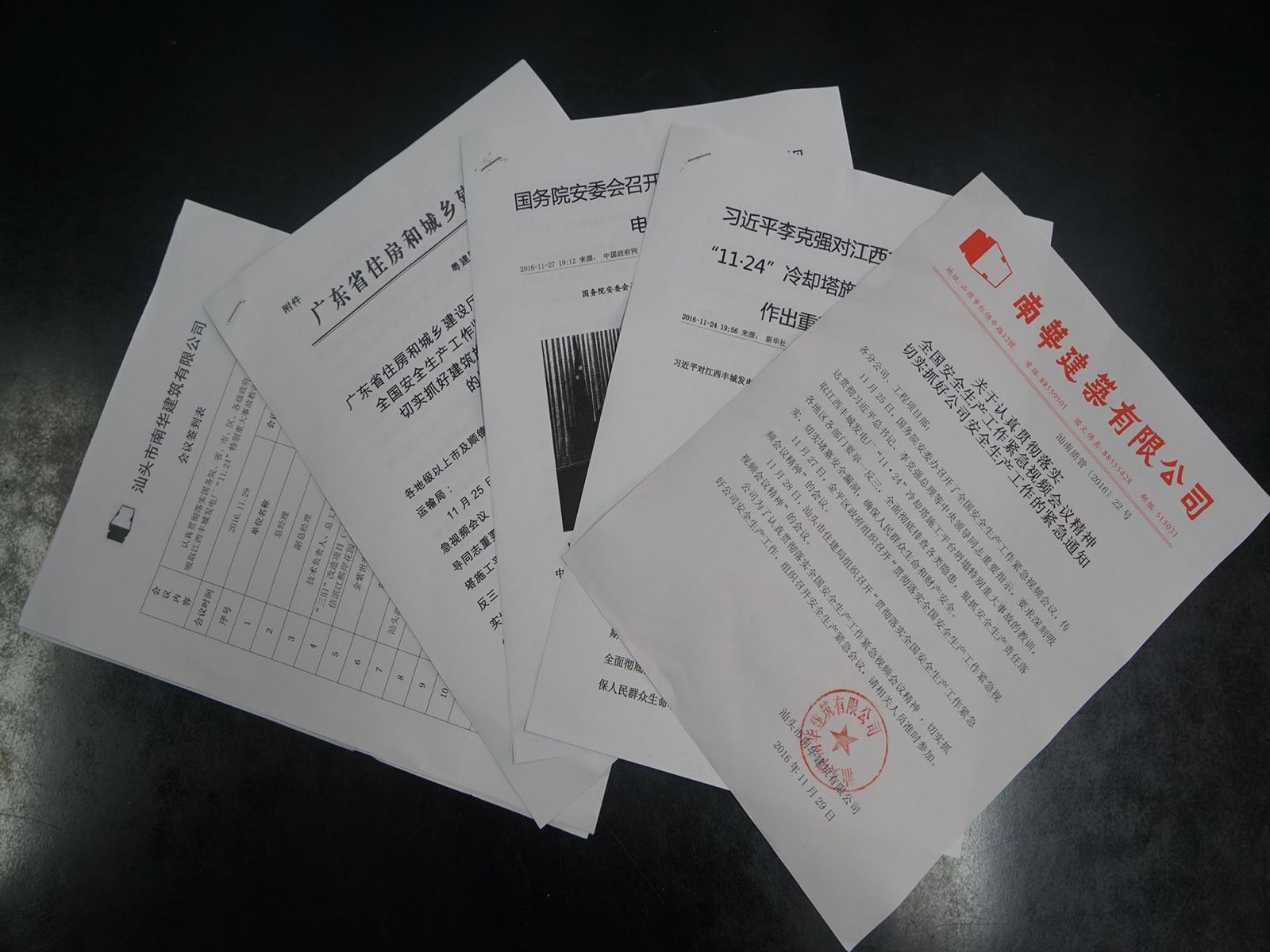 11月29日,公司組織公司職員、在建項目部負責(zé)人以及相關(guān)人員在公司會議廳召開安全生產(chǎn)緊急會議,認真貫徹落實國務(wù)院、省、市、區(qū)、各級政府安全生產(chǎn)工作緊急視頻會議精神、建設(shè)主管部門關(guān)于《深刻吸取江西豐城發(fā)電廠“11.24”特別重大事故教訓(xùn)》文件精神。會議上,公司部門負責(zé)人對承建的在建項目的安全及進度情況進行匯報,分析工程施工上需嚴格加強防范的各個重大危險源,指導(dǎo)安全生產(chǎn)技術(shù)措施,提出具體安全安排措施,要求各項目按照以下要求切實抓好公司安全生產(chǎn)工作: