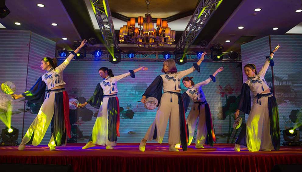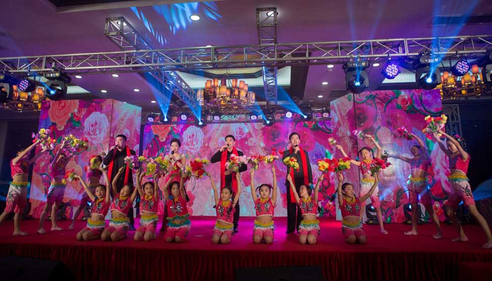 晚會現(xiàn)場賓朋滿座、掌聲熱烈、氣氛高昂,菜肴豐盛。來自各個(gè)部門的員工精心準(zhǔn)備的文藝節(jié)目,例如茶藝表演、青春舞蹈、小品表演、雙人舞伴古箏表演、小組合唱、現(xiàn)場書法表演、少兒舞蹈、歌曲合唱等精彩節(jié)目。晚會上泰國特邀嘉賓還送上精彩的舞蹈和誠摯的新年祝福。這些節(jié)目多才多藝、精彩紛呈,為新的一年添上濃濃的喜慶色彩!
