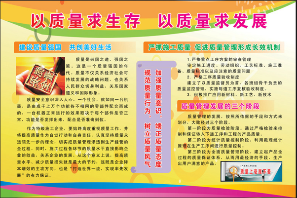 公司秉承“科學(xué)管理、創(chuàng)時代精品;誠信服務(wù)、讓客戶滿意”的質(zhì)量方針、“以質(zhì)取勝、信守合同”的企業(yè)精神以及堅持“安全第一、預(yù)防為主、綜合治理”安全生產(chǎn)工作方針,加大對質(zhì)量、安全生產(chǎn)、文明施工的宣傳和管理力度, 切實消除質(zhì)量、安全隱患。全面貫徹落實上級行政主管部門文件的精神和要求,做好每月的定期、日常和節(jié)前節(jié)后的檢查工作、以及上級部署的各項專項檢查工作。