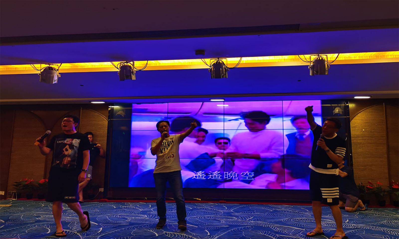 集團(tuán)公司林董事長(zhǎng)、李總經(jīng)理,惠東公司歐陽(yáng)總經(jīng)理合唱《朋友》,并希望大家不忘初心,攜手前行。