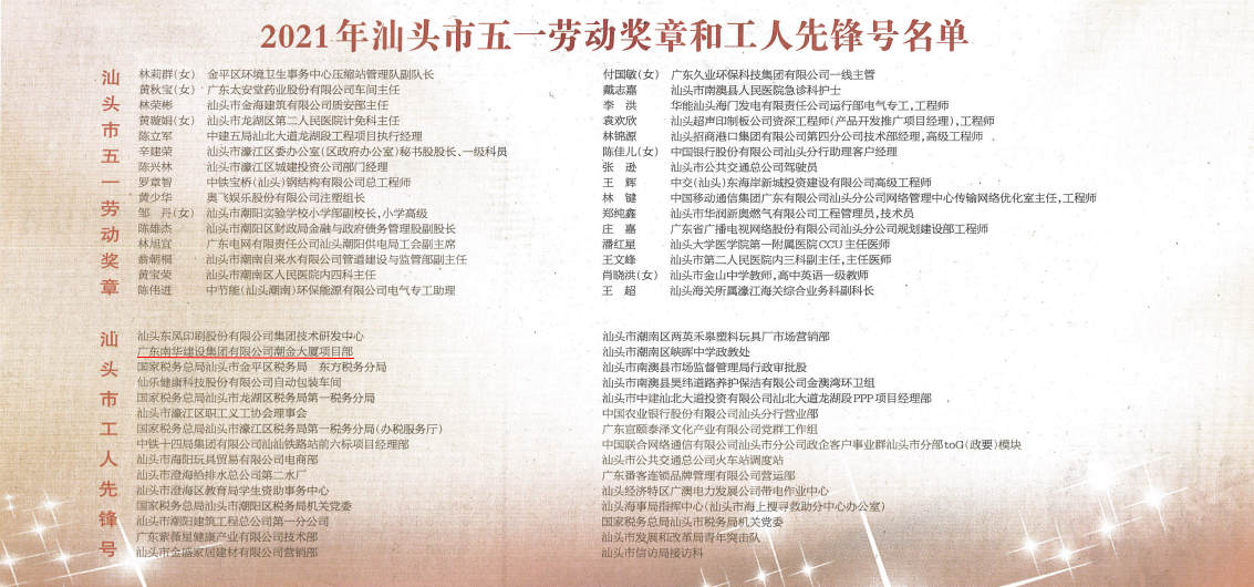 “五一”國際勞動節(jié)來臨之際,4月30日下午,市委市政府在市委會議中心大會堂召開汕頭市慶祝“五一”國際勞動節(jié)大會。南華建設(shè)集團(tuán)“潮金大廈項(xiàng)目部”榮獲汕頭市 “工人先鋒號”稱號!