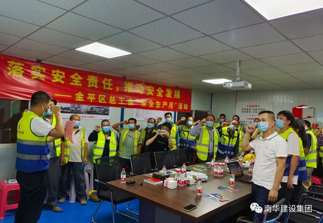 6月16日,金平區(qū)總工會以“落實安全責(zé)任,推動安全發(fā)展”為主題,在集團(tuán)公司潮金大廈項目部開展2021年“安全生產(chǎn)月”活動,區(qū)工會、集團(tuán)公司工會及項目部管理人員、工人代表等參加活動。
