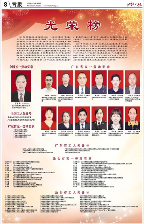 4月28日,2022年廣東省慶祝“五一”國際勞動節(jié)暨勞模表彰大會在廣州舉行,市設分會場在市委會議中心舉行。會議對獲得廣東省五一勞動獎狀、五一勞動獎章、工人先鋒號的單位及個人進行表彰。集團公司吳和斌同志榮獲廣東省五一勞動獎章。