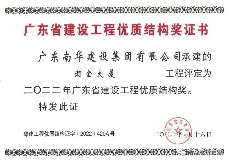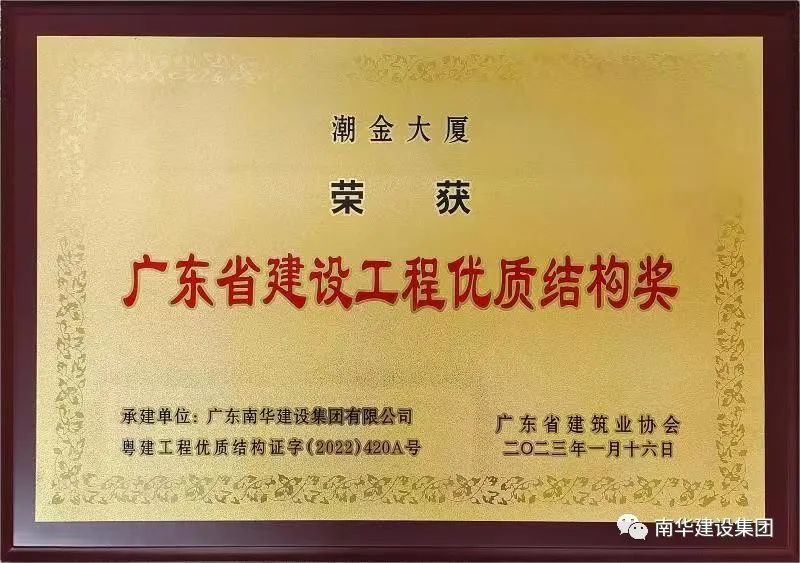 喜訊!潮金大廈榮獲“廣東省建設(shè)工程優(yōu)質(zhì)結(jié)構(gòu)獎(jiǎng)”