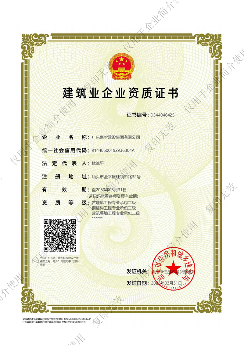 建筑業(yè)企業(yè)資質(zhì)證書(副本)